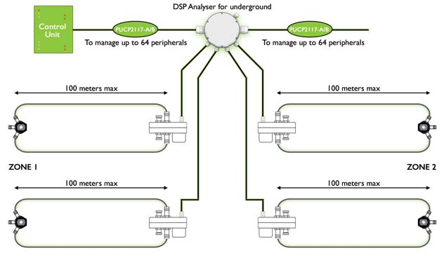 Each sensor will have a single zone of protection each up to a maximum of 100 metres in length. Each zone will have two or, in high security applications, four tubes joined at one end to the compensating valve and at the other to the sensor.