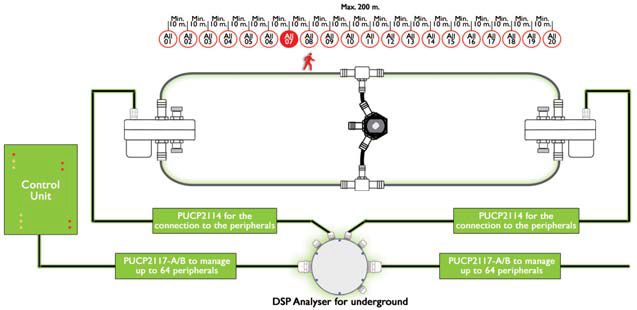The signals are generated by two sensors, placed at the two ends of the buried tubes of the sensitive zone. These signals are evaluated by a concentrator, which can discriminate between attempted intrusions and atmospheric and environmental signals and determine the point of entry to the sensitive zone with a precision of 5 metres.